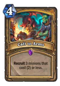 - Call to Arms is the alpha and the omega. The be-all and end-all. It is a card you keep in the mulligan in every single matchup, and it swings and wins games by itself. Drawing and summoning three two-drops (in case of Even Paladin that has no one-drops) for four mana is incredibly powerful.