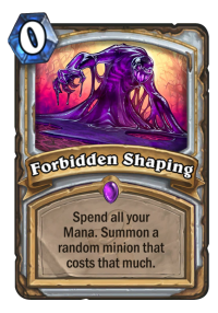 Forbidden Shaping is one of the most flexible cards available to Priest and that flexibility is why a lot of people play it. In faster matchups, you can use it on turn 3 or 4 to spawn something. The minion you spawn will generally be slightly below the curve, but it’s better than passing a turn. It can be played instead one of your big drops – in slower matchups you can wait until late game before you play it, resulting in (most likely) a strong, big threat. And in faster matchup it’s not a completely dead card.