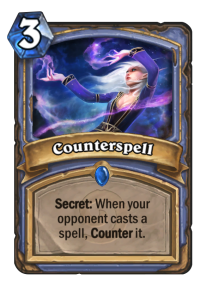 Mana Wyrm is, again, the best card you can have in the early game. Lots of decks might not have a way to deal with a 1 mana 3 health minion, and it can snowball out of control very quickly. If you follow it with 3 cheap spells, it’s a 1 mana 4/3 already, with a potential to grow further. If your opponent won’t find an answer, it can carry the game by itself. However, other minions are also good – especially Kirin Tor Mage, which not only has a solid body for the mana cost, but gives you a lot of tempo by playing a Secret for free. The best case scenario is going second, opening with a Mana Wyrm into Coin + Kirin Tor + Counterspell. Not only you have two strong minions on the board (on Turn 2!), but your opponent can’t remove them with spells OR proc the Counterspell with Coin.