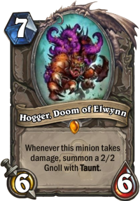 Hogger – Even though the “infinite value” of summoning a new Taunt every turn is tempting, in reality he rarely survives past the first turn, making him not much better than an overpriced Silver Hand Knight. The 4/4 body is just too easy to deal with in the late game, even through a 2/2 Taunt.