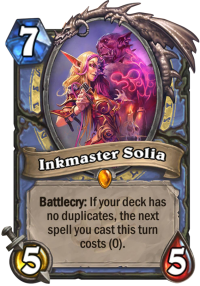 Soularium might be considered a combo piece, but it’s really awkward, because you likely won’t get to play the cards (unless you draw something that costs 1), so you discard all 3. Drawing “only” 3 as opposed to shuffling your entire hand (usually 5+) also means that the chance of getting one of the minions you want is much lower.