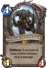 Despite being a neutral legendary, Gormok is for all intents and purposes a Warlock class card as he is only seen in Zoo. Even then, he seems to have fallen out of most Zoo lists. He was only in 33% of the Hearthpwn sample of American Prelim lists and some of the very best Zoo players chose not to bring him. Though this may be due to players running heavily tech-ed lists even during peak usage, Gormok was never core to any Zoo build. He is easily replaced by a Dark Iron Dwarf, which is a more consistent card even though it provides less potential upside. Gormok remains powerful and Zoo is the list in which his battlecry is most likely to proc and so he is the definition of a flex pick, i.e. Tier 3.