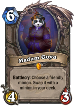 Goya doesn’t see play because 1) she swaps with a random card from your deck and 2) the effect does not trigger the battlecry of the card played from the deck (Drake, Barnes, Jinyu fail)