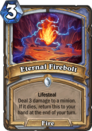 Eternal Firebolt is a 3 Mana Cost Common Mage, Priest Spell card from the Echoes of the Infinite set!