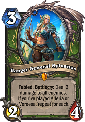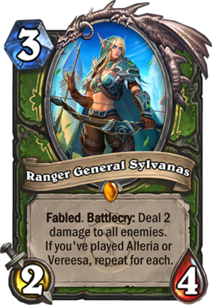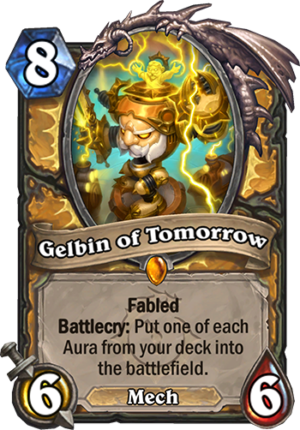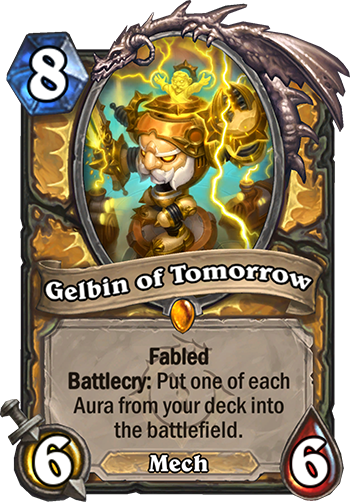 Fabled cards have strong synergies with each other. In case of Hunter’s Ranger General Sylvanas, each Windrunner sister gets stronger based whether you’ve played others already. Paladin’s Gelbin of Tomorrow plays Aura cards from your deck, and comes in a package with two strong Auras with Tradeable. This way you can stick them back to your deck in case you draw them before you can play him.