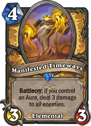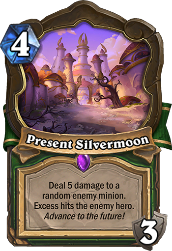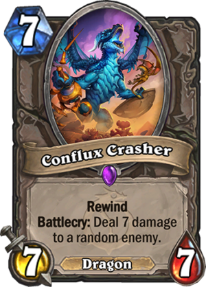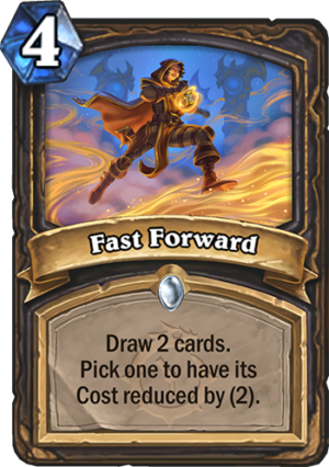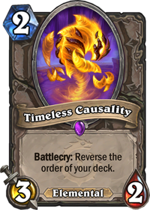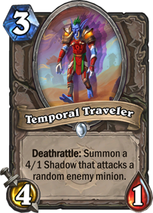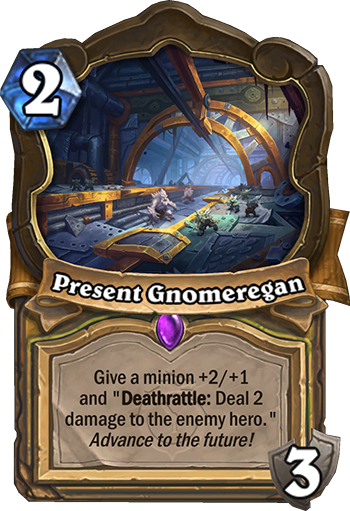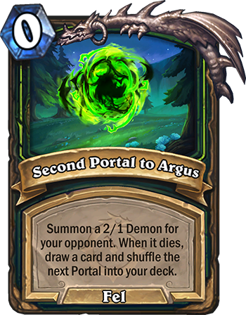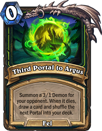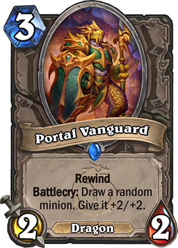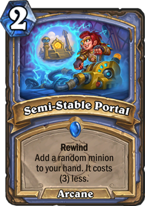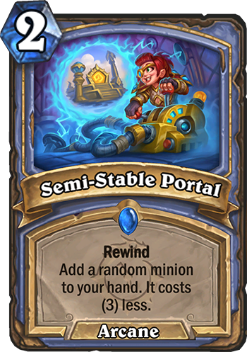 The card above show two simple examples of the effect in action. Portal Vanguard draws a minion and gives it +2/+2. However, if you don’t like the minion it drew at first (for example, you want a minion with Handbuff synergy), you can Rewind and draw a card again. Same for Semi-Stable Portal. The card works exactly like the oldschool Unstable Portal, just with Rewind added in. So you can choose to keep the first minion you get… or re-roll it into another random minion.
