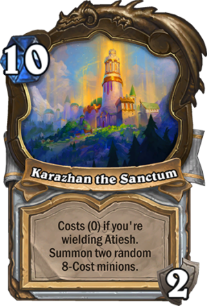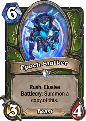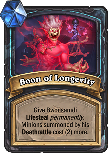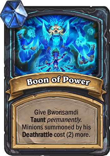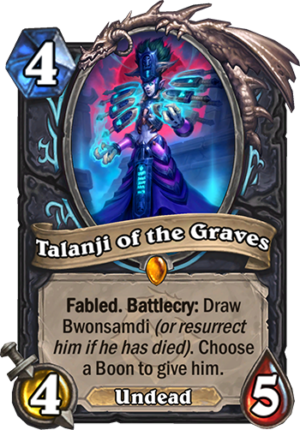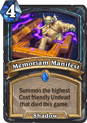 So death knight wants to run a resurrect package with Wakener of Souls and Bowmasmwnedi as their only deathrattles; clone ‘What happened to Zandallasaaer’ with tidepool pupil, Memoriam Manifest resurercts Wakener > resurects 2 bowoaw-aasdi > resurect 2 random 10 drops with lifesteal; since there are no undead or deathrattle 10 drops in standard, this doesnt break to the summons of bowowallaby. At end game your umbra becomes a 1 card fill the board with 10 drops.