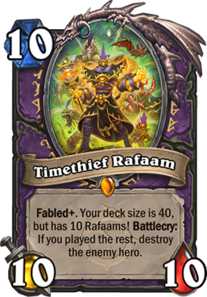 Fabled cards represent Heroes brought from different timelines by Chromie to help her fight against Nozdormu. They are all Legendary cards, and each class is going to get one.