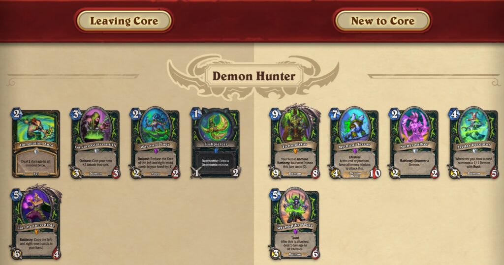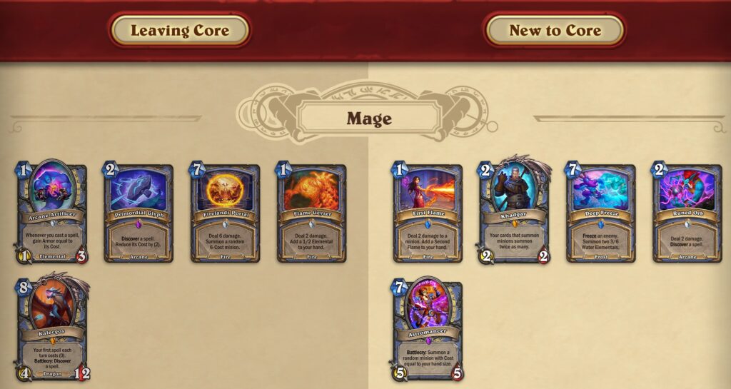 Anyway, here’s a list of all the cards rotating out and the ones that will replace them. Below that, you can also find a full list of card changes. I’ll publish a full, updated list of cards in Core Set 2026 soon, once we get the official images.