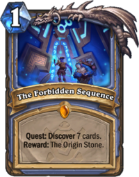 To activate The Forbidden Sequence, you need to Discover 8 cards. As a reward, you get The Origin Stone.