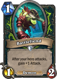 The first problem I ran into was finding good one-drops. For a fairly aggressive deck, I would usually look for either six or eight one-cost minions to ensure a strong opener. As an upside, each class typically has a good one-cost minion in the Core set, and Demon Hunter has Battlefiend, which is a great minion that sees a lot of play in the current Aggro Demon Hunter decks. Demon Hunter also has Crimson Sigil Runner, but you really want to play it when it is in Outcast position so that you get to draw a card. That’s it for the class one-drops, there simply are no more class-specific options.