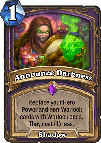 Announce Darkness is a 1 Mana Cost Epic Rogue, Warlock Spell card from the Perils in Paradise set!
