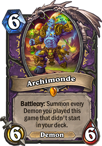 Archimonde is a 6 Mana Cost Legendary Warlock Minion Demon card from the The Great Dark Beyond set!