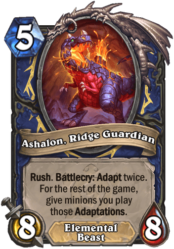 Ashalon, Ridge Guardian is a 5 Mana Cost Free Shaman Minion Beast card from the The Lost City of Un'Goro set!