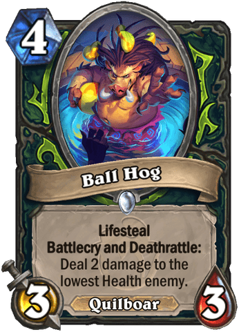Ball Hog is a 4 Mana Cost Common Demon Hunter Minion Quilboar card from the Whizbang's Workshop set!