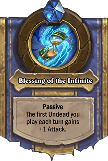 Blessing of the Infinite is a 0 Mana Cost Free Death Knight Hero Power card from the Echoes of the Infinite set!