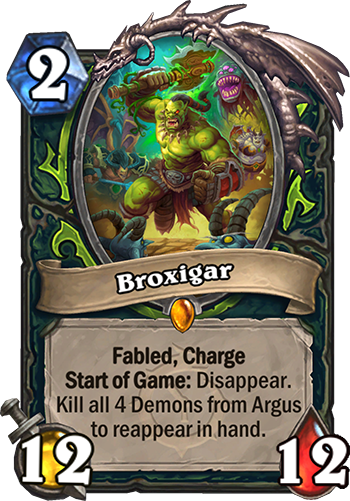 The wound Broxigar dealt to Sargeras during his last stand is a glory no other orcish hero has ever achieved.- Mana Cost: 2