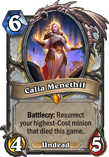 Calia Menethil is a 6 Mana Cost Legendary Priest Minion Undead card from the Core Set 2026 set!
