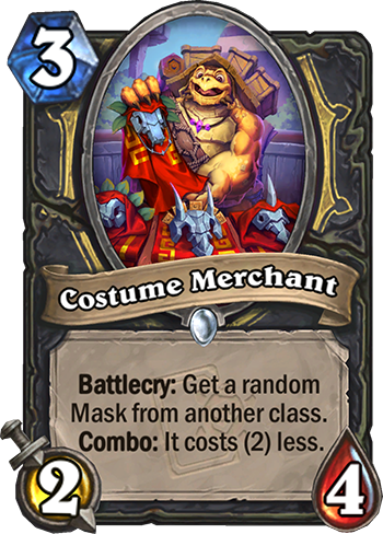 Costume Merchant is a 3 Mana Cost Common Rogue Minion card from the Day of Rebirth set!