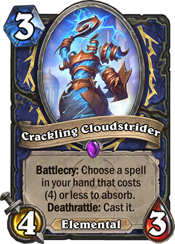 Crackling Cloudstrider is a 3 Mana Cost Epic Shaman Minion Elemental card from the CATACLYSM set!