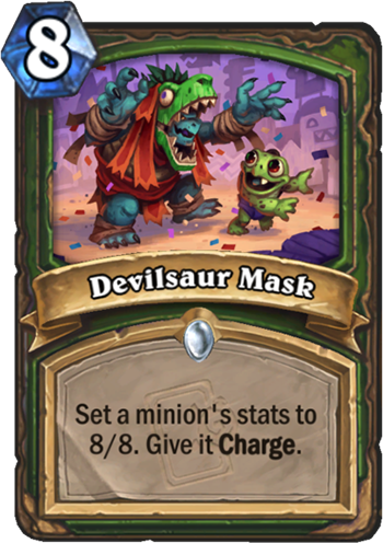 Devilsaur Mask is a 8 Mana Cost Common Hunter Spell card from the Day of Rebirth set!