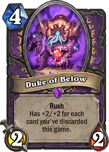 Duke of Below is a 4 Mana Cost Epic Warlock Minion card from the CATACLYSM set!