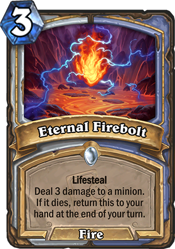 Eternal Firebolt is a 3 Mana Cost Common Mage, Priest Spell card from the Echoes of the Infinite set!