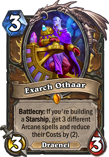 Battlecry: If you're building a Starship, get 3 different Arcane spells and reduce their cost by (2).