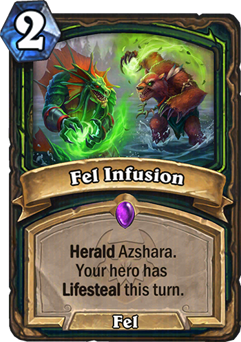 Fel Infusion is a 2 Mana Cost Epic Demon Hunter Spell card from the CATACLYSM set!
