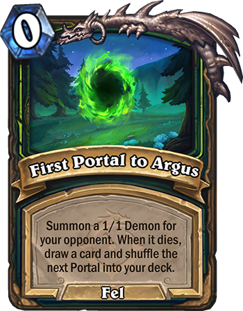 First Portal to Argus is a 0 Mana Cost Free Demon Hunter Spell card from the Across the Timeways set!