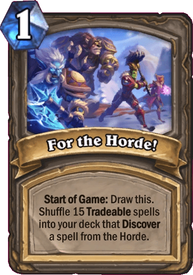 Start of Game: Draw this. Shuffle 15 Tradeable spell into your deck that Discover a spell from the Horde.