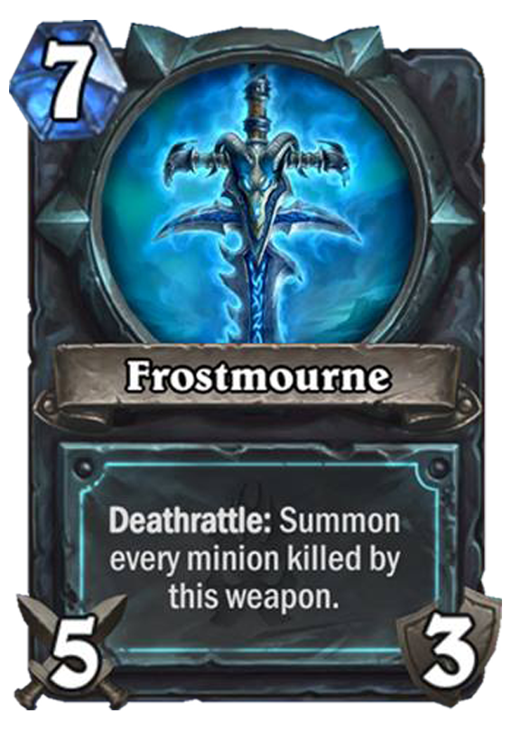 Frostmourne (The Lich King) is a 7 Mana Cost Free Neutral Weapon card from the Knights of the Frozen Throne set!