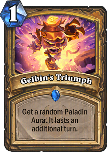 Gelbin’s Triumph is a 1 Mana Cost Rare Paladin Spell card from the CATACLYSM set!