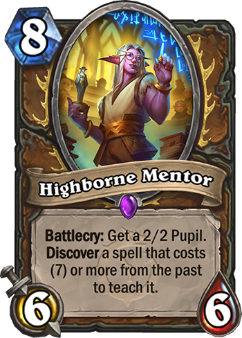 Highborne Mentor is a 8 Mana Cost Epic Druid Minion card from the Across the Timeways set!