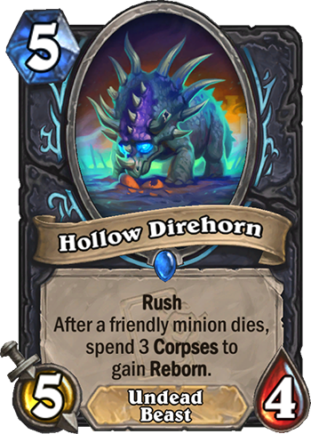 Hollow Direhorn is a 5 Mana Cost Rare Death Knight Minion Beast card from the Day of Rebirth set!