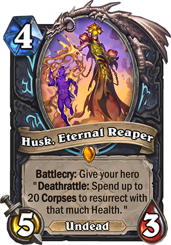 Husk, Eternal Reaper is a 4 Mana Cost Legendary Death Knight Minion Undead card from the Across the Timeways set!