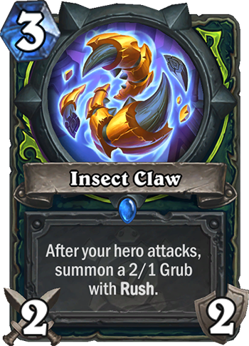 After your hero attacks, summon a 2/1 Grub with Rush.