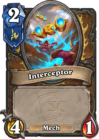 | Carrier Type: Minion - Cost: 12 - Attack: 2 - Health: 14 At the end of your turn, summon four 4/1 Interceptors that attack random enemies. |