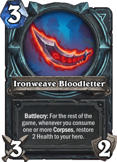 Battlecry: For the rest of the game, whenever you consume one of more Corpses, restore 2 Health to your hero.