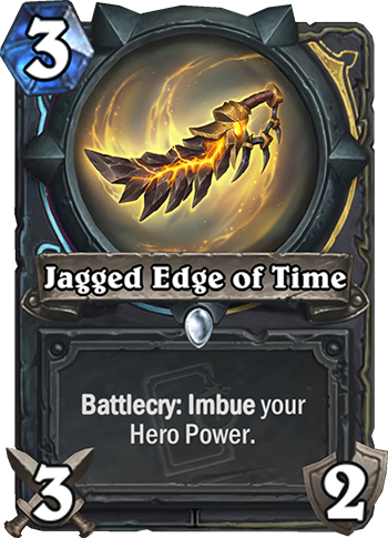 Jagged Edge of Time is a 3 Mana Cost Common Death Knight, Rogue Weapon card from the Echoes of the Infinite set!