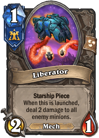 Liberator is a 1 Mana Cost Free Paladin, Shaman, Warrior Minion Mech card from the Heroes of Starcraft set!