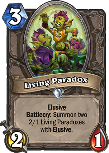 Elusive Battlecry: Summon two 2/1 Living Paradoxes with Elusive.