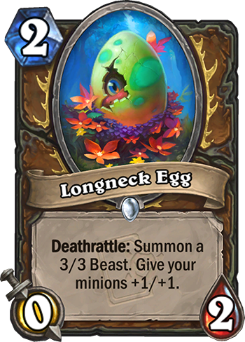 Longneck Egg is a 2 Mana Cost Common Druid Minion card from the Day of Rebirth set!