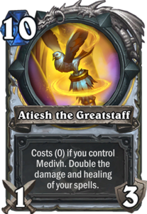 Costs (0) if you're wielding Atiesh. Summon two random 8-Cost minions.