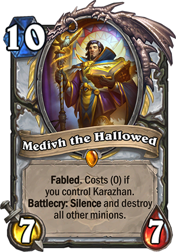 Fabled. Costs (0) if you control Karazhan. Battlecry: Silence and destroy all other minions.