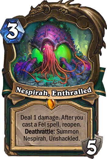 Deal 1 damage. After you cast a Fel spell, reopen. Deathrattle: Summon Nespirah, Unshackled.