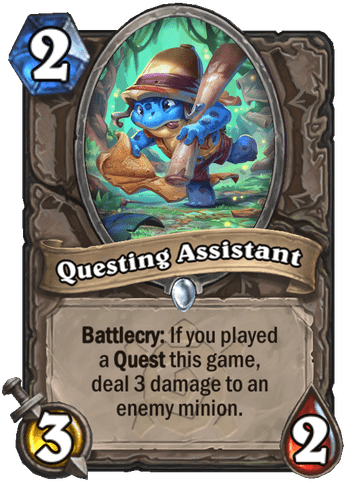 Questing Assistant is a 2 Mana Cost Common Neutral Minion card from the The Lost City of Un'Goro set!