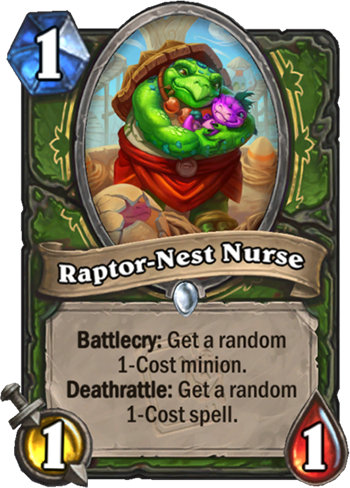 Raptor-Nest Nurse is a 1 Mana Cost Common Hunter Minion card from the Day of Rebirth set!