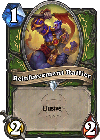 Reinforcement Rallier Reinforcement Rallier is a 1 Mana Cost Common Hunter Minion card from the CATACLYSM set! Card Text Elusive Mana Cost: 1 Attack: 2 Health: 2 Crafting Cost: 40 / 400 (Golden) Arcane Dust Gained: 5 / 50 (Golden) Rarity: CommonClass: HunterCard Type: MinionSet: CATACLYSM Mechanics: Elusive Tweet Rate this Card Rate this item:1.002.003.004.005.00Submit Rating Rating: 4.3/5. From 26 votes. Please wait... By: Stonekeep - February 23, 2026 - Updated: 2 hours ago