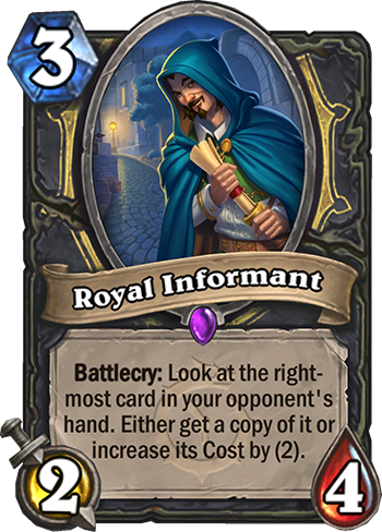 Royal Informant is a 3 Mana Cost Epic Rogue Minion card from the Across the Timeways set!